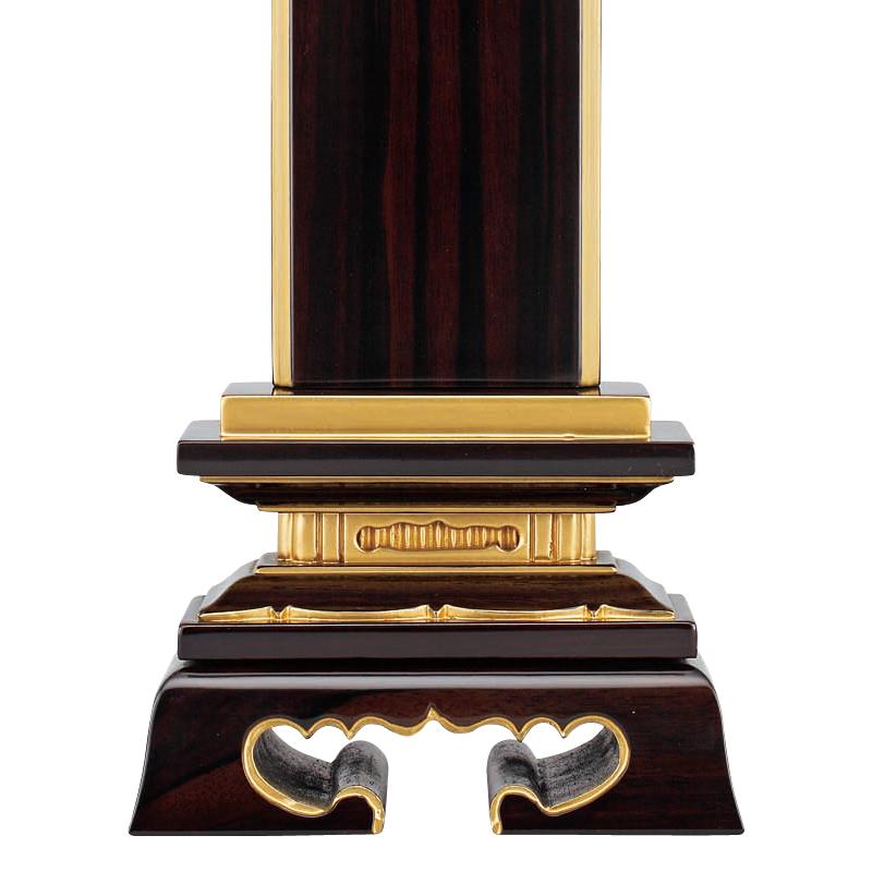 落ち着きあるフォルムのオーソドックスな唐木位牌です。金箔が施され、上質感のある仕上がりです。カマチ座(足部分)は、「春日型(かすががた)」と呼ばれるデザインで、幅広い層に人気があります。カラーは、穏やかさと落ち着きを感じさせる「黒檀調」と、深みのあるワインレッドが上品な「紫檀調」の2色です。