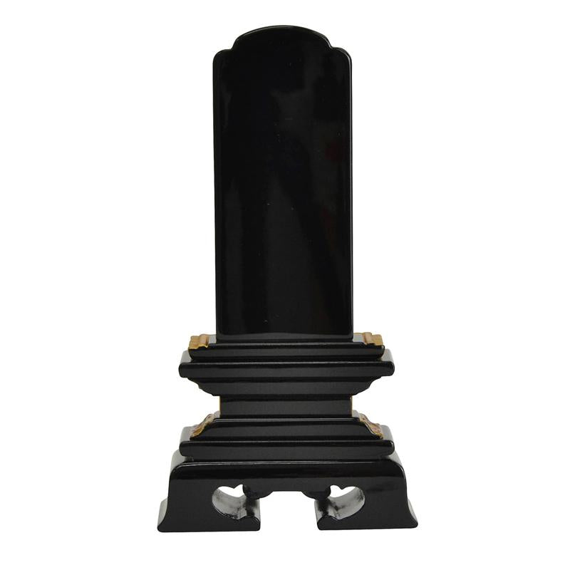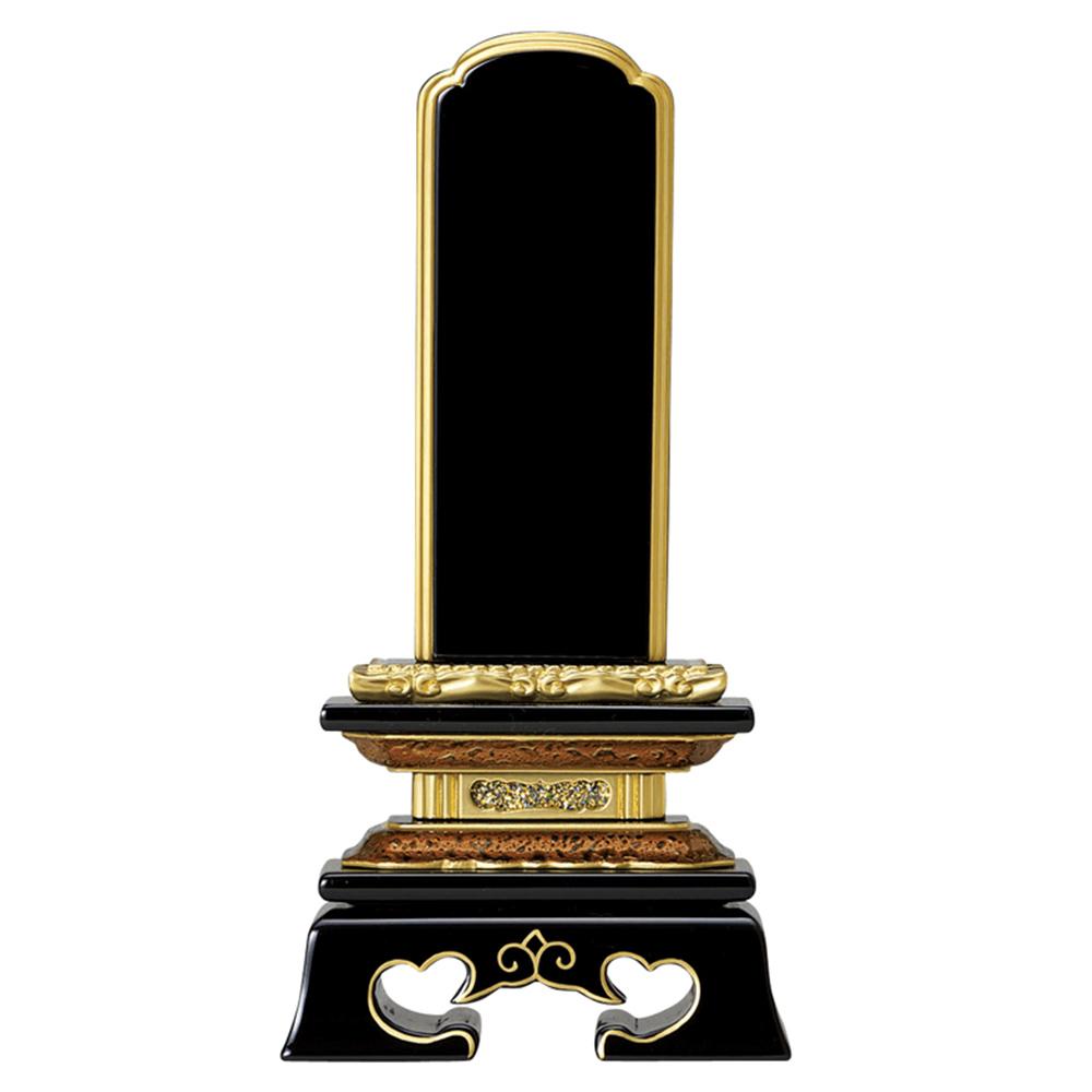 「勝美型」と呼ばれる、春日型の台座に、独特な前垂れを付けたような脚部が特徴です。札受け部分には、金虫喰いと呼ばれる変わり塗りの装飾がされています。東日本や北日本の方に多く選ばれている「東型位牌」の1つです。