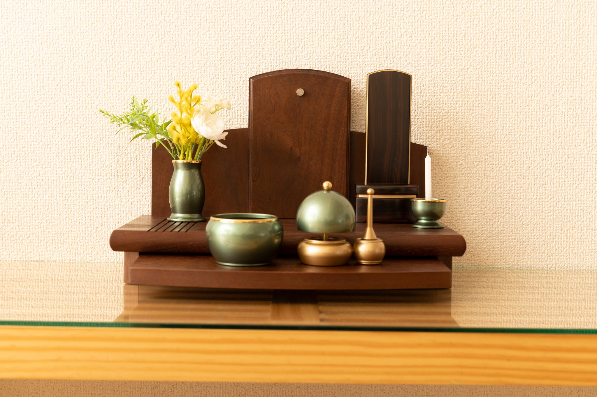 正面写真(カラー:ウォールナット)※仏壇に付属している仏具一式はデザインや内容が異なる場合がございます。